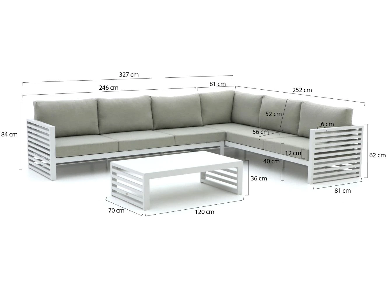Entspannen im eigenen Garten an einem warmen Sommertag? Erleben Sie optimalen Komfort mit dem Bellagio Cadora Ecklounge-Set. Dieses ist aus Aluminium in der Farbe Weiß. Es besteht aus 1 Bellagio Cadora Loungesofa für 3 Personen 252 cm, 1 Bellagio Cadora Loungesofa rechts Arm 246 cm und 1 Bellagio Cadora Loungetisch 120×70 cm. Ihnen ein individuelles Gartenmöbel-Set zusammenzustellen ist in vielen Fällen auch möglich. Bitte kontaktieren Sie uns, um die Möglichkeiten zu besprechen.