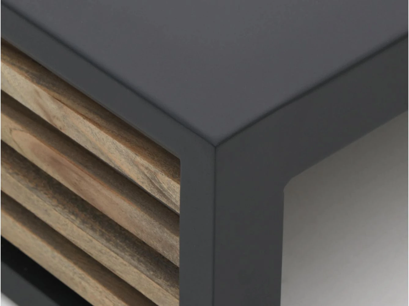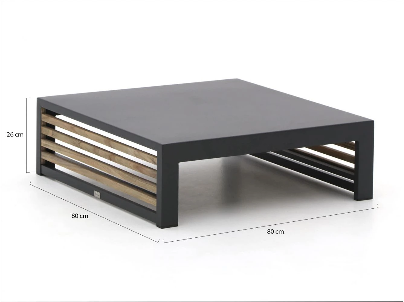 Der Bellagio Cadora Loungetisch (80×80 cm) ist aus pulverbeschichtetem Aluminium und Teakholz in der Farbe Charcoal gefertigt. Pulverbeschichtet bedeutet, dass die Farbe unter großer Hitze auf das Aluminium gebrannt wurde, sodass der Cadora Loungetisch optimal geschützt ist. Aluminium ist ein starkes Material und leicht zu reinigen. Dadurch eignet der Cadora Loungetisch aus Aluminium in der Farbe Charcoal sich perfekt als Gartenmöbel für den Außenbereich.