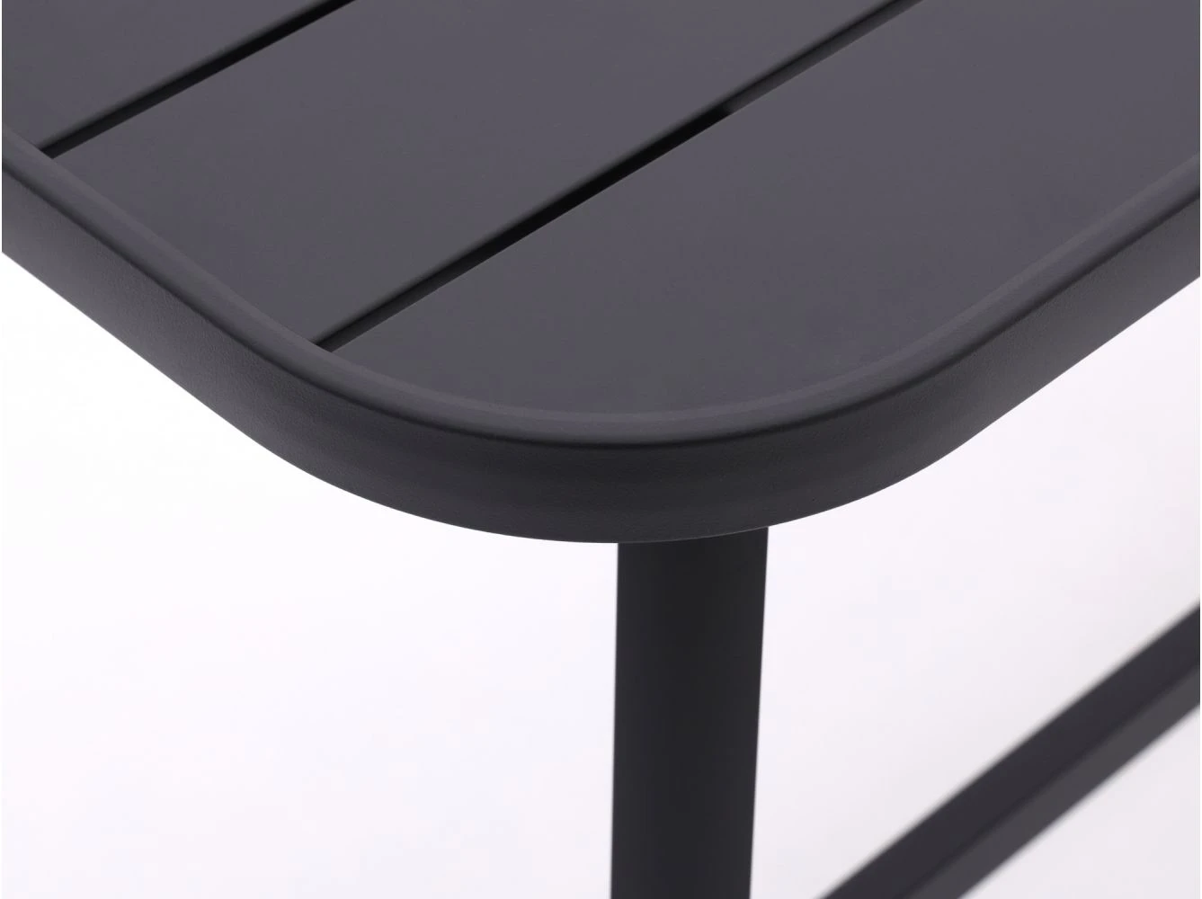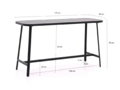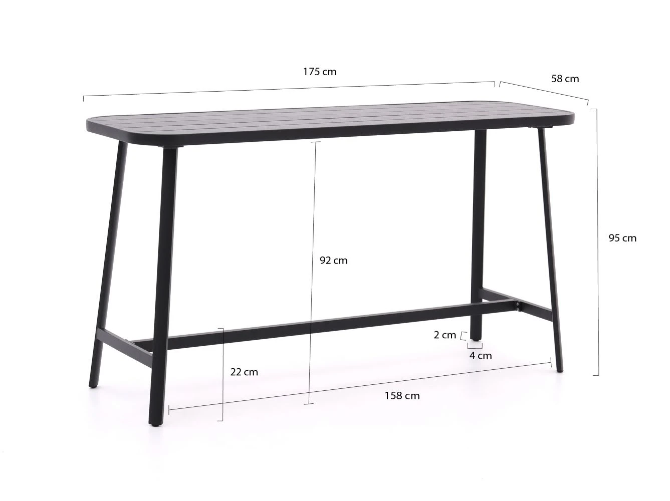 Der Bartisch ist aus pulverbeschichtetem Aluminium gefertigt. Pulverbeschichtet bedeutet, dass die Farbe unter großer Hitze auf das Aluminium gebrannt wird. Hierdurch ist der Tisch ideal vor Witterungseinflüssen geschützt. Dieses Material ist pflegeleicht, leicht im Gewicht und stabil. Außerdem rostet Aluminium nicht durch. Genaue Maße des Tisches finden Sie bei den Produktbildern.