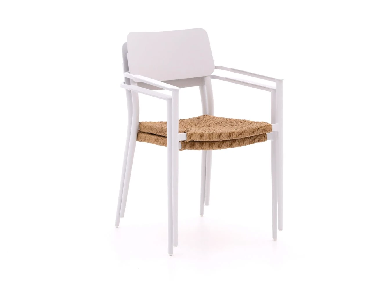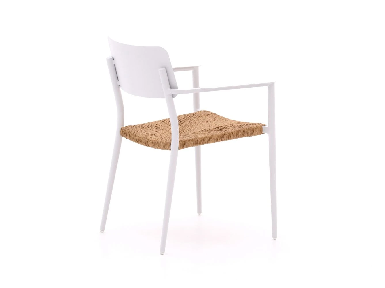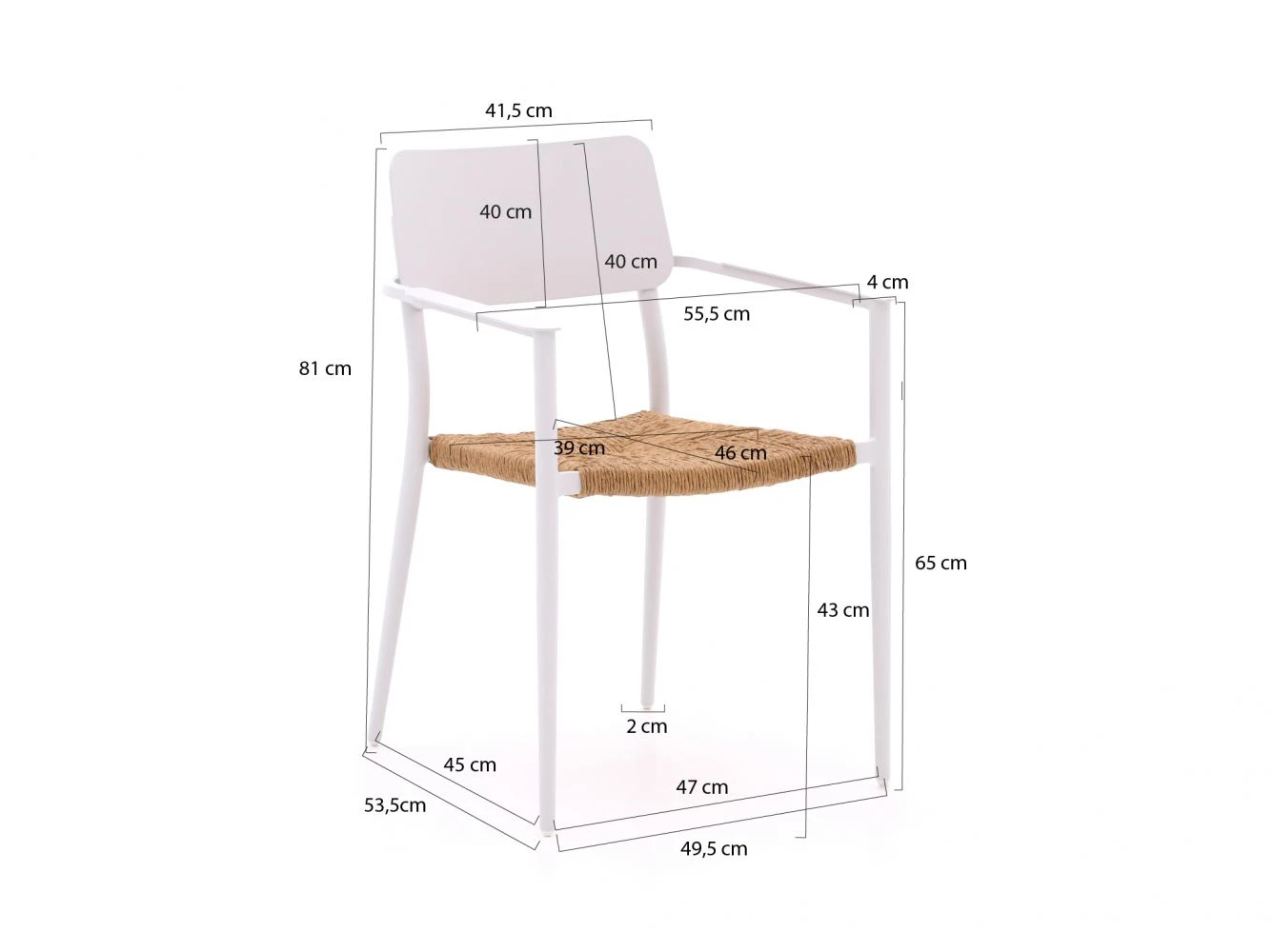 Das weiße Gestell des Stuhls ist aus pulverbeschichtetem Aluminium gefertigt. Pulverbeschichtet bedeutet, dass die Farbe unter großer Hitze auf das Aluminium gebrannt wird. Hierdurch ist der Stuhl ideal vor Witterungseinflüssen geschützt. Die Sitzschale besteht aus hochwertigem Kunststoff. Kunststoff ist pflegeleicht, robust und leicht im Gewicht. Die abgerundete Form und das ergonomische Design garantieren einen optimalen Komfort. Die Kombination aus diesen beiden Materialien ist pflegeleicht, leicht im Gewicht und stabil. Außerdem rostet Aluminium nicht durch. Genaue Maße finden Sie bei den Produktbildern.