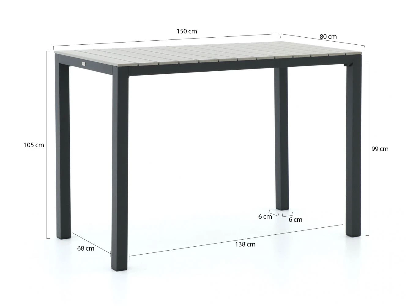 Mit den Maßen 150x80x105 cm bietet dieser Bellagio Fidenza Bartisch Ihnen viele Kombinationsmöglichkeiten. Die Kombination von Aluminium mit Polywood in der Farbe Light Grey verleiht dem Bravo Sideboard einen modernen Look. Am unteren Rand der Tischbeine befinden sich Kunststoffkappen um den Bartisch und auch die Terrasse vor Beschädigungen zu schützen. Der Fidenza Bartisch ist pflegeleicht und kann das ganze Jahr über draußen stehen bleiben.
