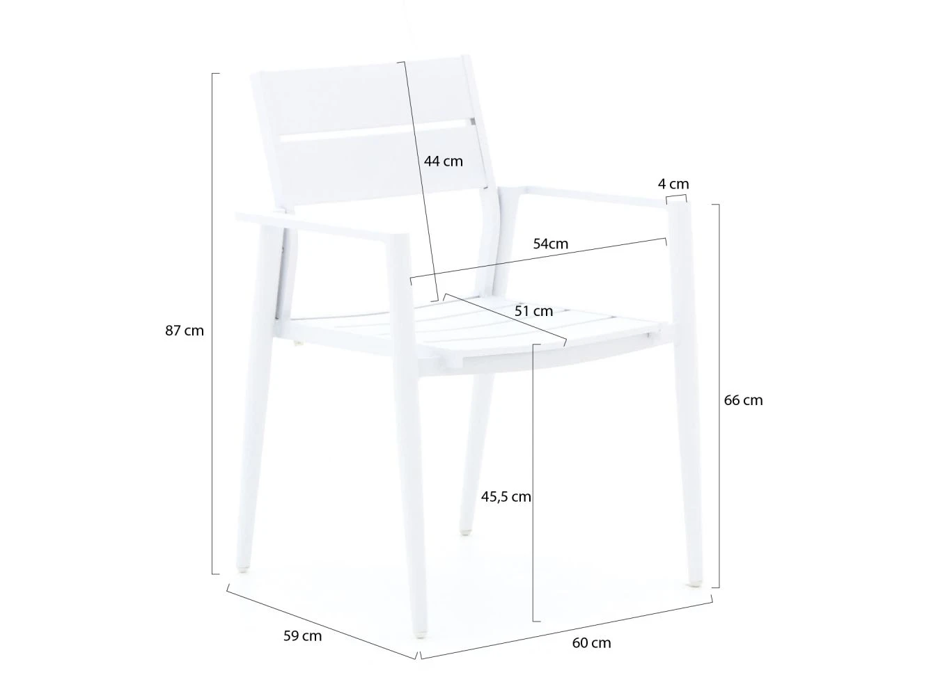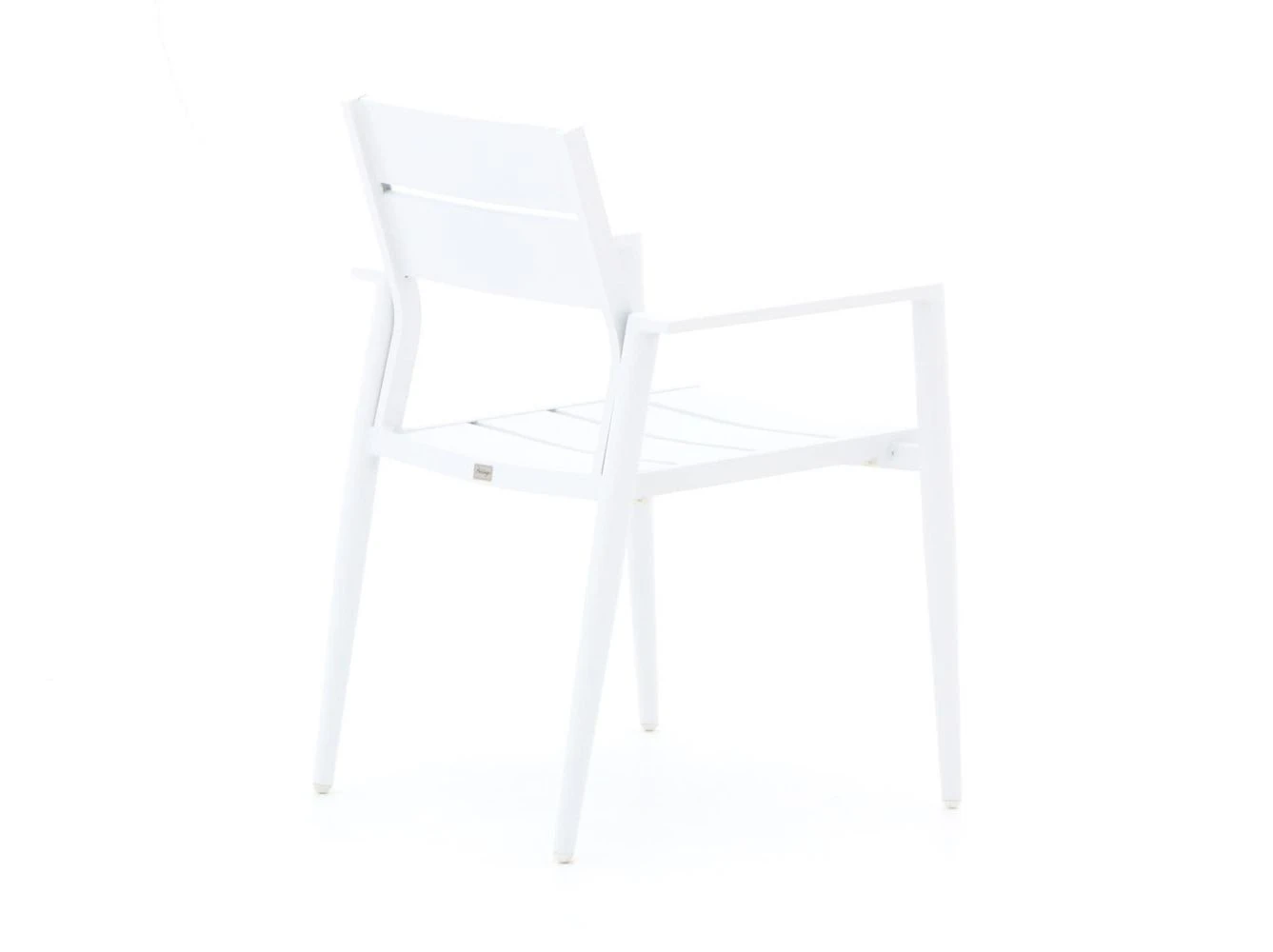 Der stapelbare Bellagio Fondo Essstuhl ist komplett aus pulverbeschichtetem Aluminium gefertigt. Pulverbeschichtet bedeutet, dass die Farbe unter großer Hitze auf das Aluminium gebrannt wurde. Dieser Prozess sorgt dafür, dass der Fondo Essstuhl eine bessere Schutzschicht hat. Aluminium wird aufgrund seiner positiven Eigenschaften schon seit Jahren in der Gartenmöbelindustrie verwendet. Aluminium ist leicht, stabil und pflegeleicht. Am unteren Rand der Stuhlbeine befinden sich Kunststoffkappen, um den Fondo Essstuhl und Ihre Terrasse vor Beschädigungen zu schützen.