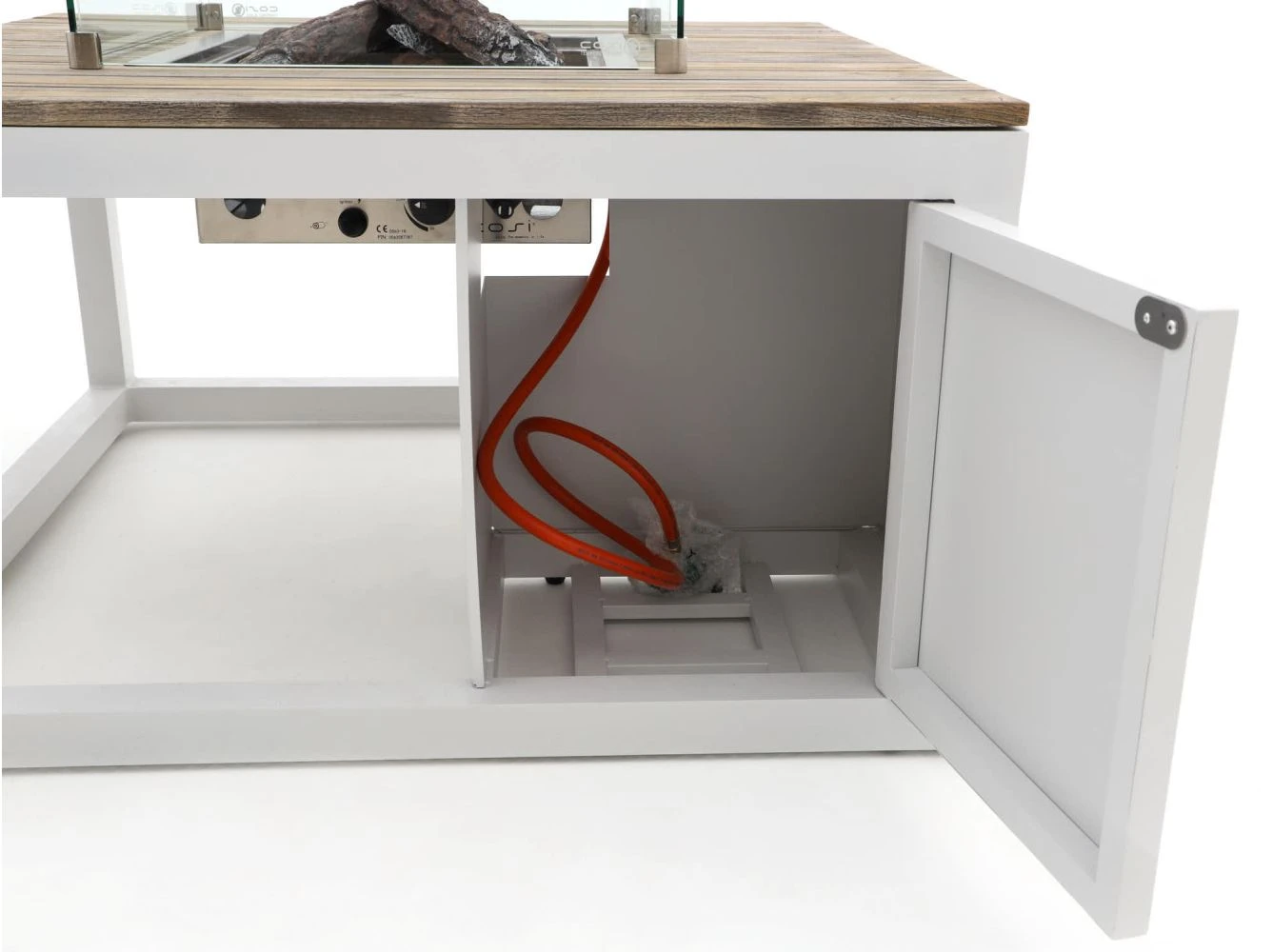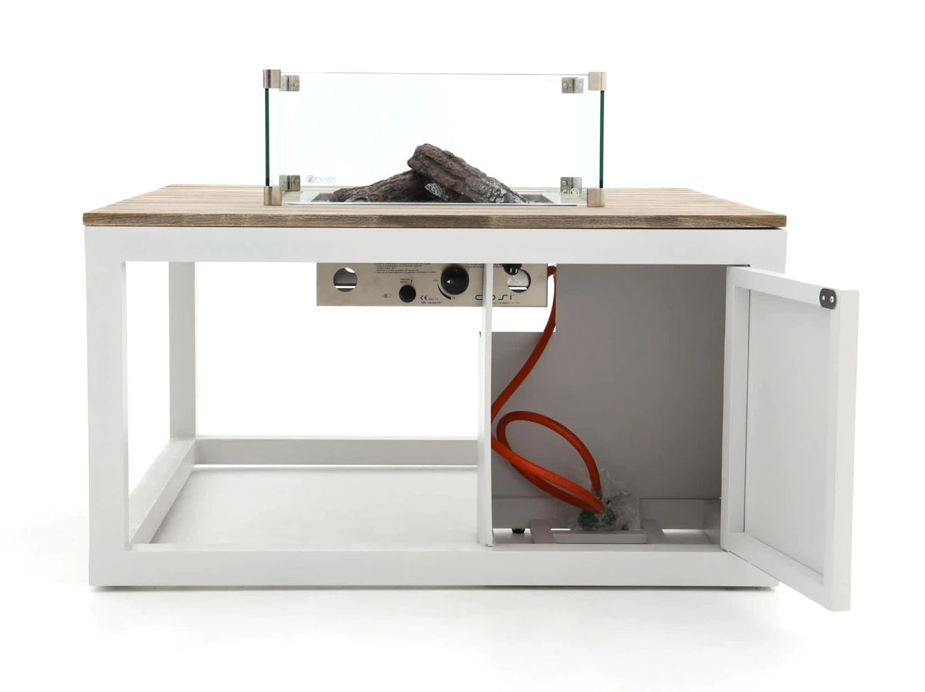 Das Gestell des Cosiraw Lounge Feuertisch besteht aus einem pulverbeschichteten Aluminiumrahmen und einer Teakholzplatte. Pulverbeschichtet bedeutet, dass die Farbe unter großer Hitze auf das Aluminium gebrannt wird. Hierdurch ist der Feuertisch ideal vor Witterungseinflüssen geschützt. Aluminium ist pflegeleicht, leicht im Gewicht und rostet nicht durch. Die Teakholzplatte ist mit einem Old Teak Greywash behandelt. Dadurch erhält der Tisch sein einzigartiges und robustes Aussehen. Dieser Cosiraw Feuertisch wird inklusive Glassatz geliefert. Dies sorgt nicht nur für ein schickes Aussehen, sondern auch für zusätzlichen Schutz bei Wind, um die Flammen von Kindern oder Haustieren fernzuhalten. Im Lieferumfang enthalten sind eine Glasumrandung, ein Flammenregler, ein Gasschlauch, 4 Keramikscheite und Lavasteine. Der Cosiraw Feuertisch wird mit einer 6 Kilogramm Alugas Gasflasche betrieben (nicht im Lieferumfang enthalten). Die genauen Abmessungen finden Sie bei den Produktbildern.