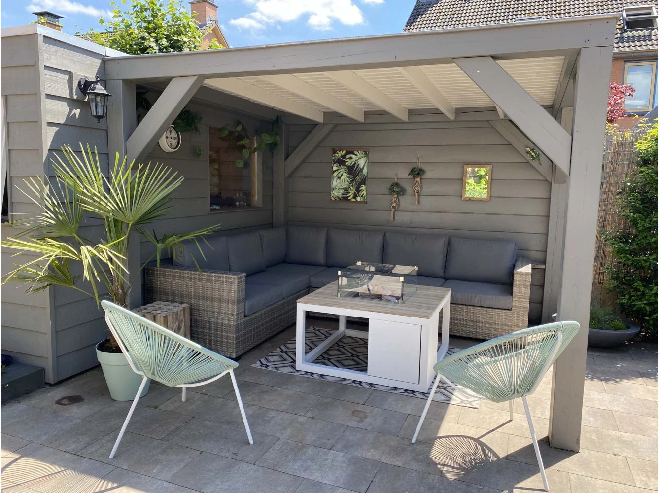 Durch die Verwendung des Aluminiumgestells und Polyrattan kann das Giotto Ecklounge-Set das ganze Jahr über draußen stehen. Wir empfehlen Ihnen, Ihre Gartenmöbel im Winter drinnen zu lagern. Wenn dies nicht möglich ist, können Sie die Gartenmöbel am besten nicht abgedeckt draußen stehen lassen.