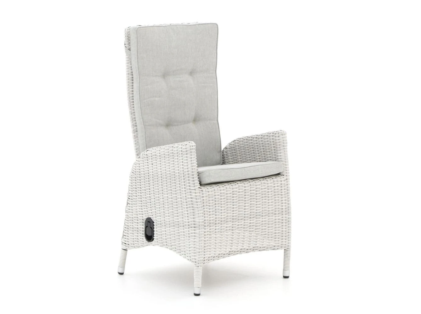 Der Intenso Fabrizi Essstuhl ist ein wunderschöner Essstuhl aus dem große Kees Smit Gartenmöbel Sortiment. Der verstellbare Fabrizi Essstuhl mit hoher Rückenlehne ist mit geflochtenem Flechtdraht in der Farbe Iceland umspannt. Der Essstuhl wird inklusive Sitz- und Rückenkissen, sowie der abgebildeten Fußbank geliefert. Ihnen ein individuelles Gartenmöbel-Set zusammenzustellen, ist in vielen Fällen auch möglich. Bitte kontaktieren Sie uns um die Möglichkeiten zu besprechen.