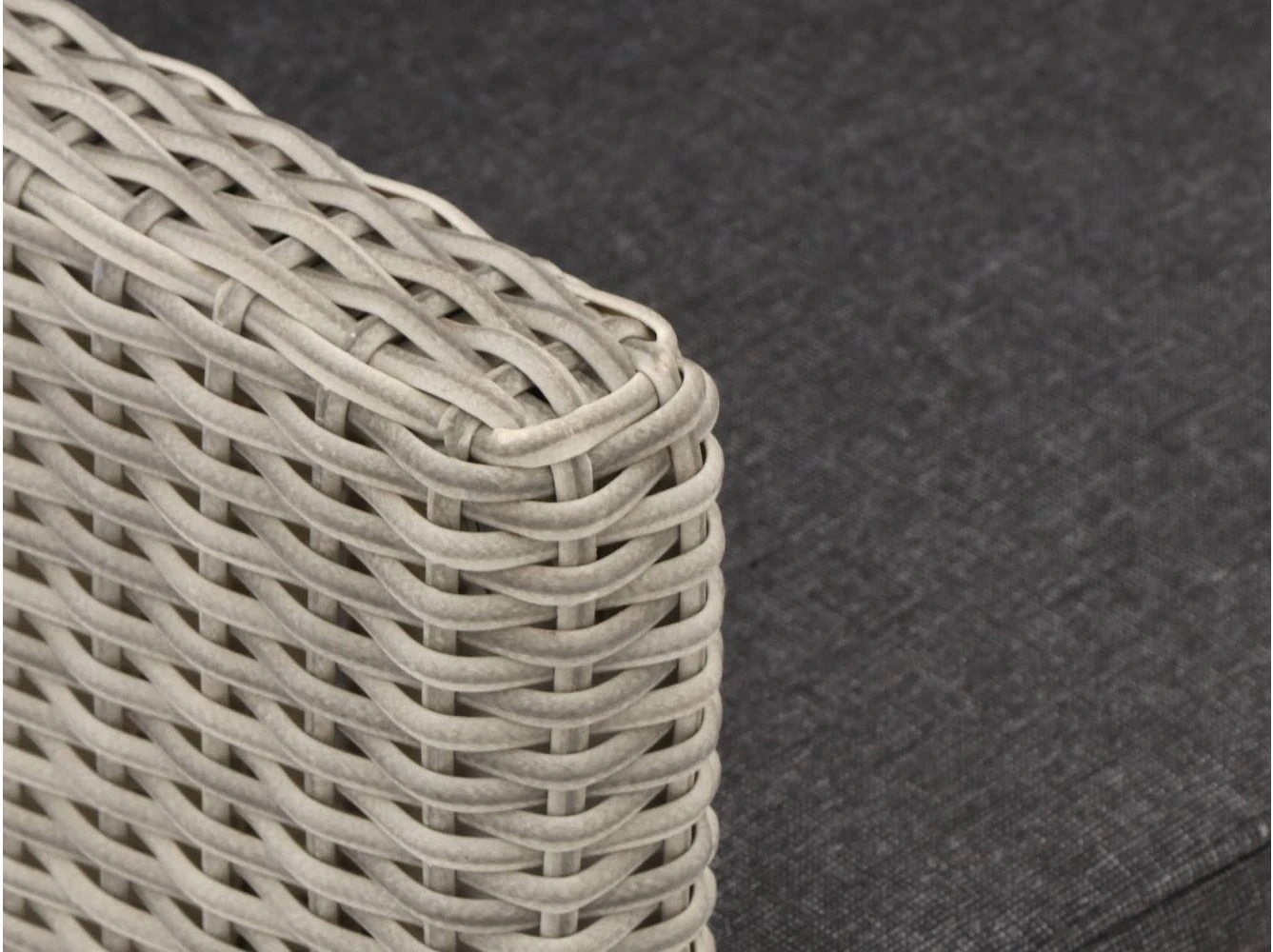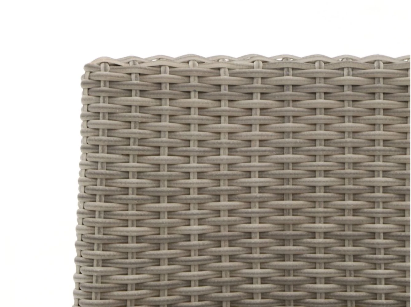 Der Intenso Lesa Essstuhl besteht aus einem Aluminiumgestell und ist mit einem Flechtdraht aus Kunststoff in der Farbe Graphite umspannt. Flechtdraht aus Kunststoff ist auch bekannt als Polyrattan. Polyrattan verfügt über viele positive Eigenschaften, sodass es sich sehr gut für den Außenbereich eignet. Polyrattan ist stark, leicht und einfach zu reinigen. Das Polyrattan in der Farbe Graphite verleiht dem Lesa Essstuhl eine warme Ausstrahlung.