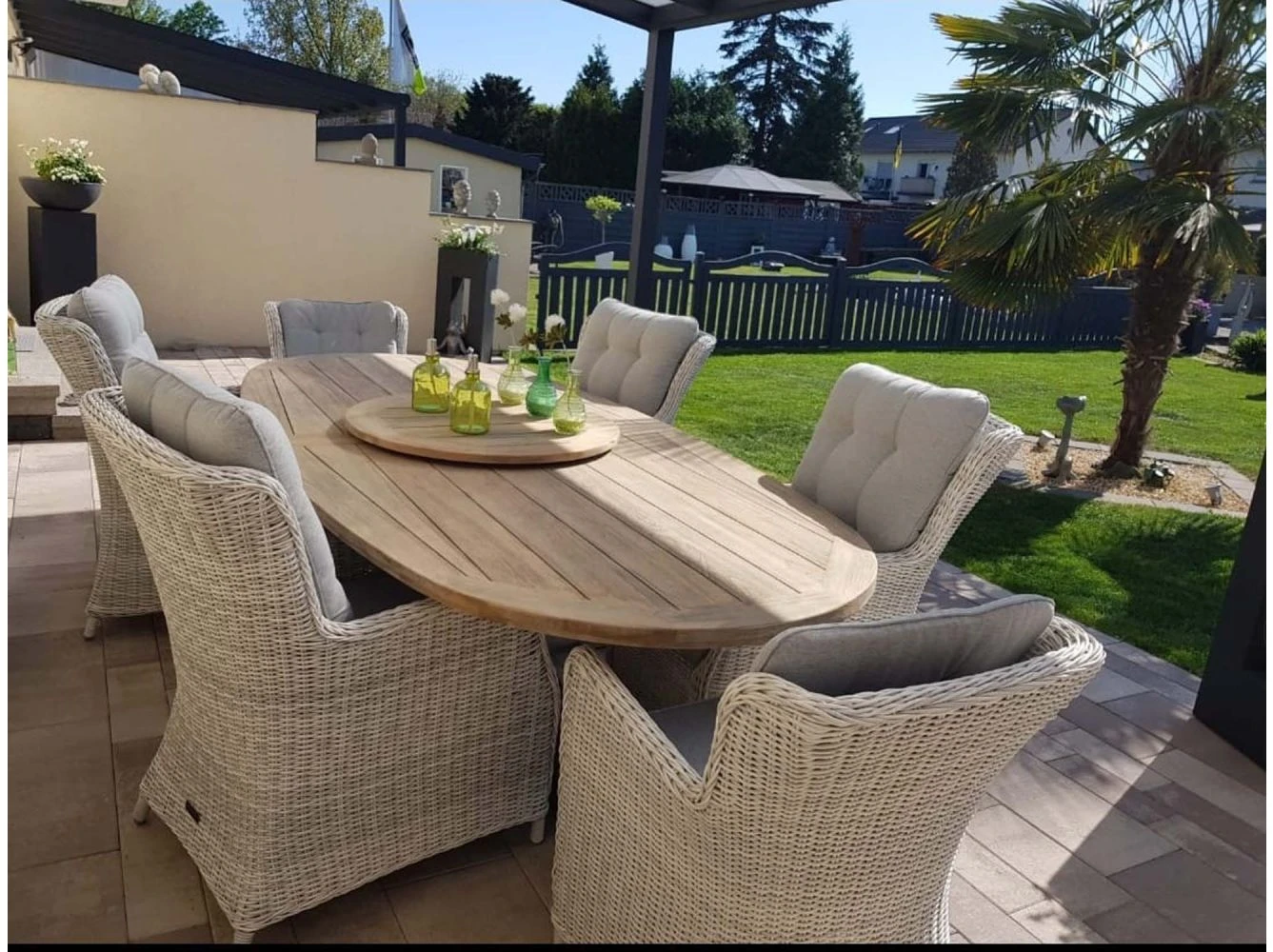 Dieser Gartensessel kann mit verschiedenen Lounge Elementen kombiniert werden. Wie wäre es mit zwei Sesseln und einem kleinen Beistelltisch? Perfekt für die Terrasse! Zusammen mit Dekokissen und Beistelltischen aus unserem Sortiment können Sie sich ein ganz individuelles Set zusammenstellen. Wir helfen Ihnen gerne weiter!