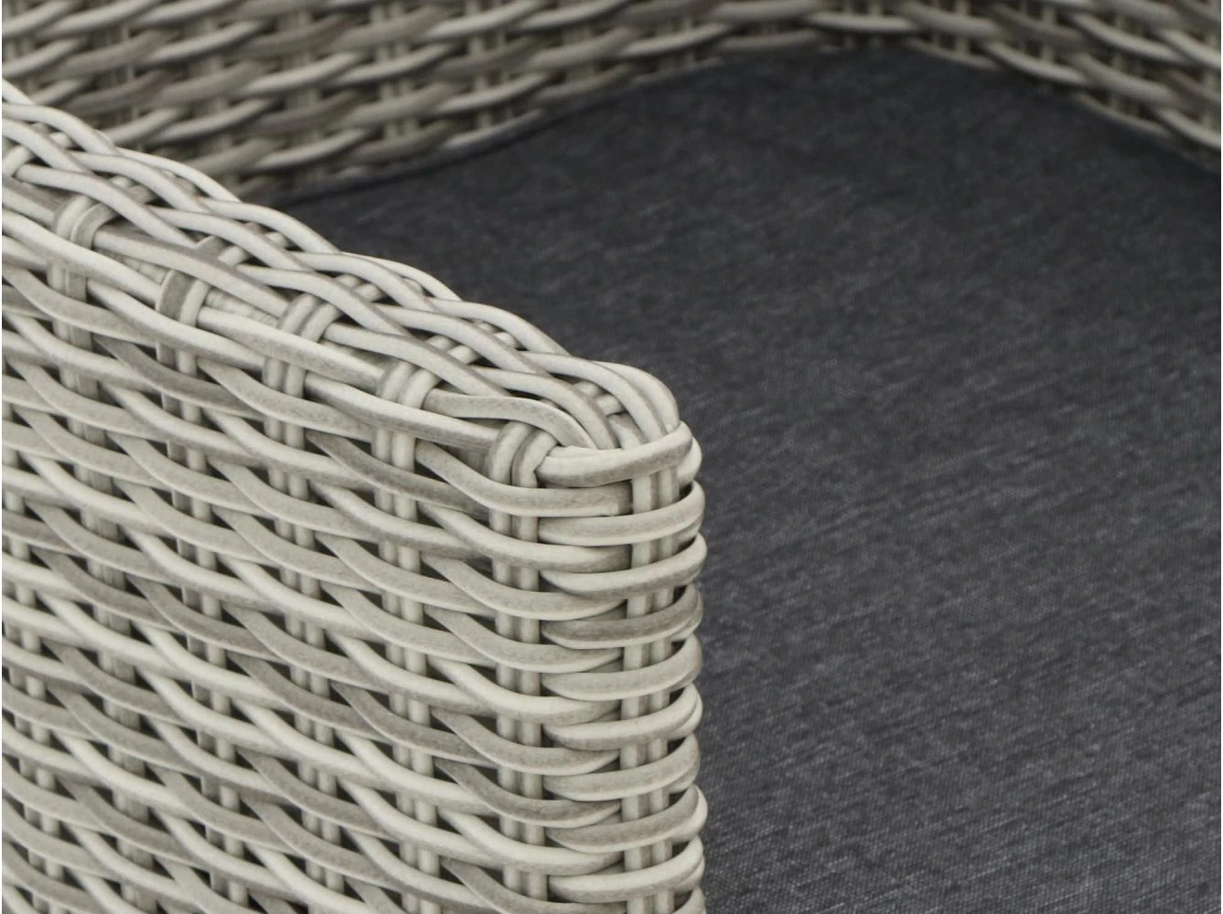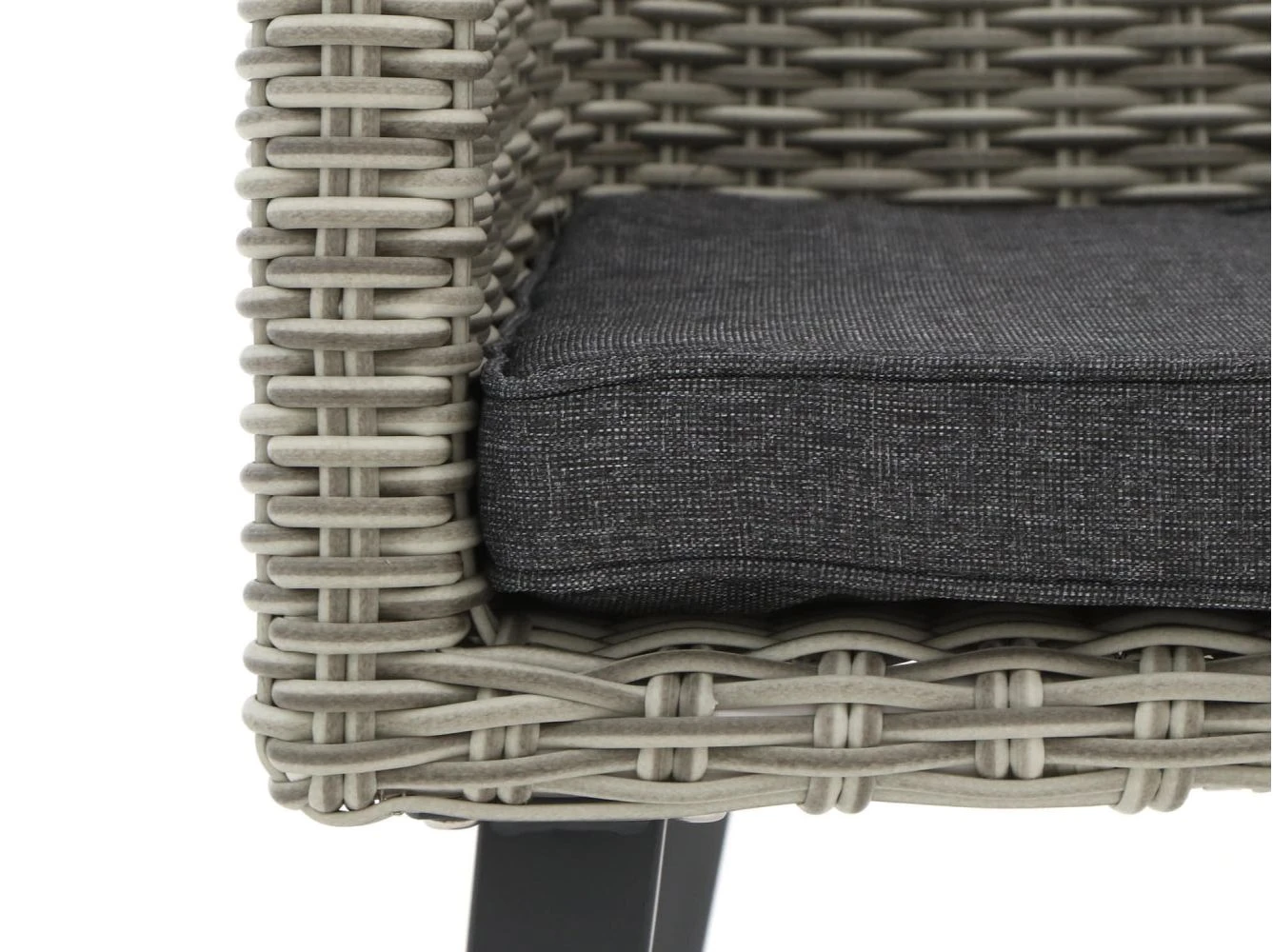 Der Matese Essstuhl besteht aus einem stabilen Aluminiumgestell, dessen Sitzfläche mit einem halbrunden Flechtdraht aus Kunststoff umwickelt ist. Dieser Flechtdraht ist auch bekannt unter dem Begriff Polyrattan. Gartenmöbel aus Polyrattan und einem Aluminiumgestell besitzen eine lange Lebensdauer und sind sehr pflegeleicht. Die Vorteile einer Kombination aus diesen beiden Materialien sind, dass diese leicht im Gewicht und gleichzeitig robust sind. Des weiteren rostet Aluminium nicht durch. Die genauen Abmessungen dieses Essstuhls finden Sie bei den Produktbildern. Das bequeme Sitzkissen ist im Lieferumfang enthalten. Der Kissenbezug kann durch einen Reißverschluss abgenommen und im Schonwaschgang bei niedriger Temperatur gewaschen werden.