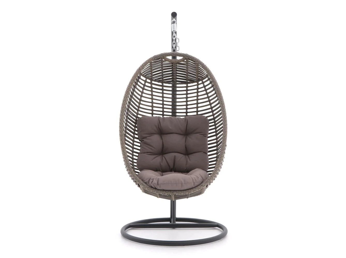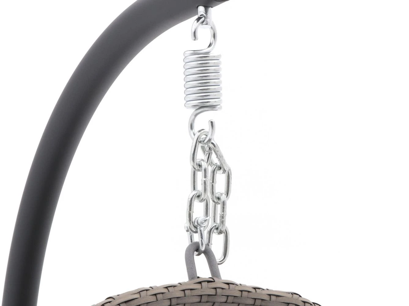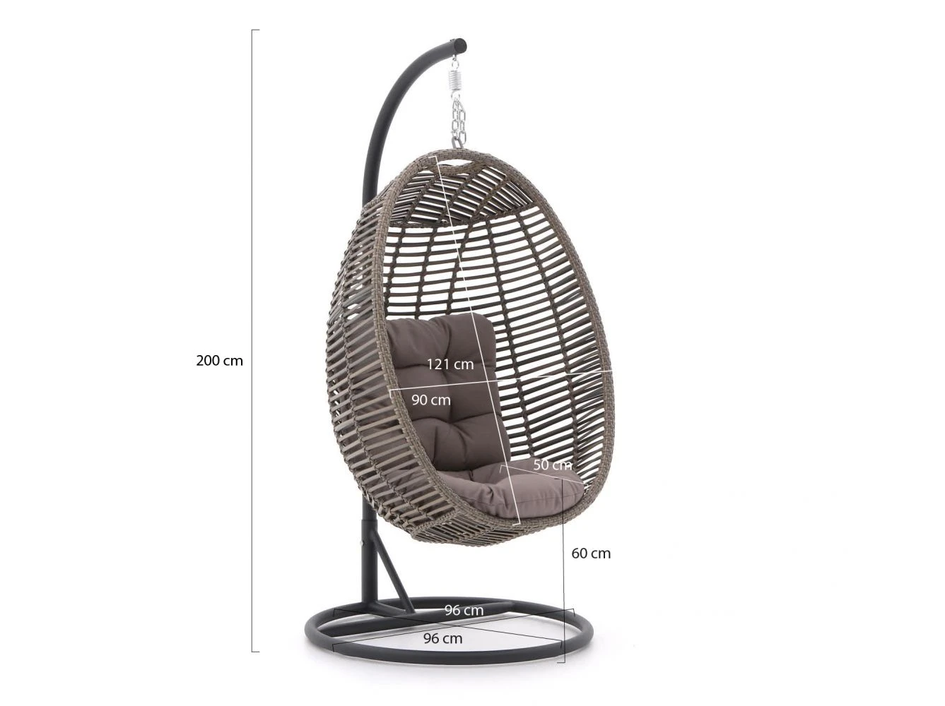 Der Ständer dieses Hängesessels ist aus lackiertem Stahl gefertigt und ist besonders stabil. Die Aufhängung des Korbes besteht aus Edelstahl. Das Gestell des Korbes besteht aus pulverbeschichtetem Aluminium und ist mit einem flachen Flechtdraht aus Kunststoff umwickelt. Dieser Flechtdraht ist auch unter dem Begriff Polyrattan bekannt. Pulverbeschichtet bedeutet, dass die Farbe unter großer Hitze auf das Aluminium gebrannt wird. Hierdurch ist der Hängesessel ideal vor Witterungseinflüssen geschützt.