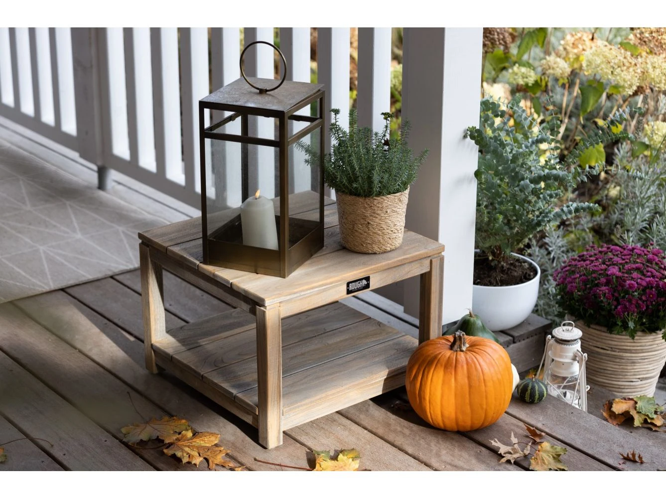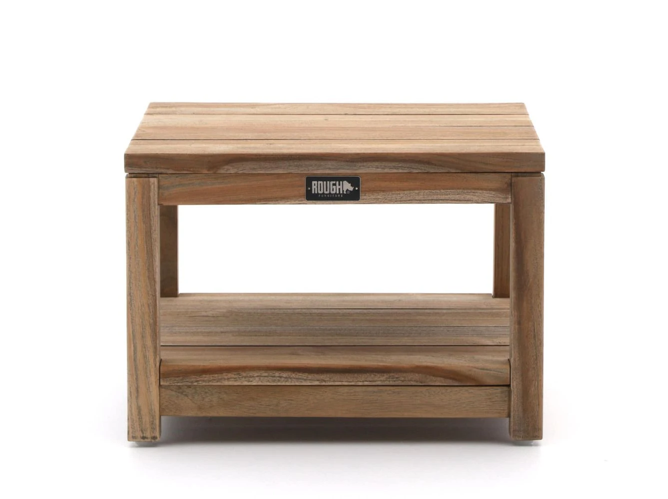 Der ROUGH-A Beistelltisch ist ein robuster Teakholz Beistelltisch und ist schon mit einer Greywash Waschung behandelt. Dieser Beistelltisch hat, neben der oberen Tischplatte, auch eine untere Tischplatte, auf die Sie Ihre Sachen abstellen können.
