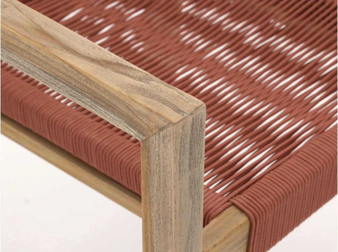 Der ROUGH Batang Rope Essstuhl ist aus witterungsbeständigem Teakholz gefertigt, welches bereits mit einer Old Teak Greywash Waschung behandelt wurde. Durch diese Waschung wurde der Alterungsprozess des Teakholzes vorweggenommen. Weiteres Einölen oder Lackieren ist somit nicht notwendig. Im Laufe der Zeit erhält das Teakholz die typische graue Farbe. Teakholz ist ein Naturprodukt, welches lebt und durch Regen, Sonne, etc. arbeitet. Das Auftreten von Rissen und Sprüngen trägt zu dem robusten Look dieser Holzart bei. Die genauen Abmessungen dieses Gartenstuhls finden Sie bei den Produktbildern. Das Single Woven Rope ist aus einem starken Nylon Seil hergestellt. Dieses ist besonders pflegeleicht und wird sich nach ersten Gebrauch auch etwas weiten. Das ändert jedoch nichts an der hochwertigen Verarbeitung dieses Stuhls.