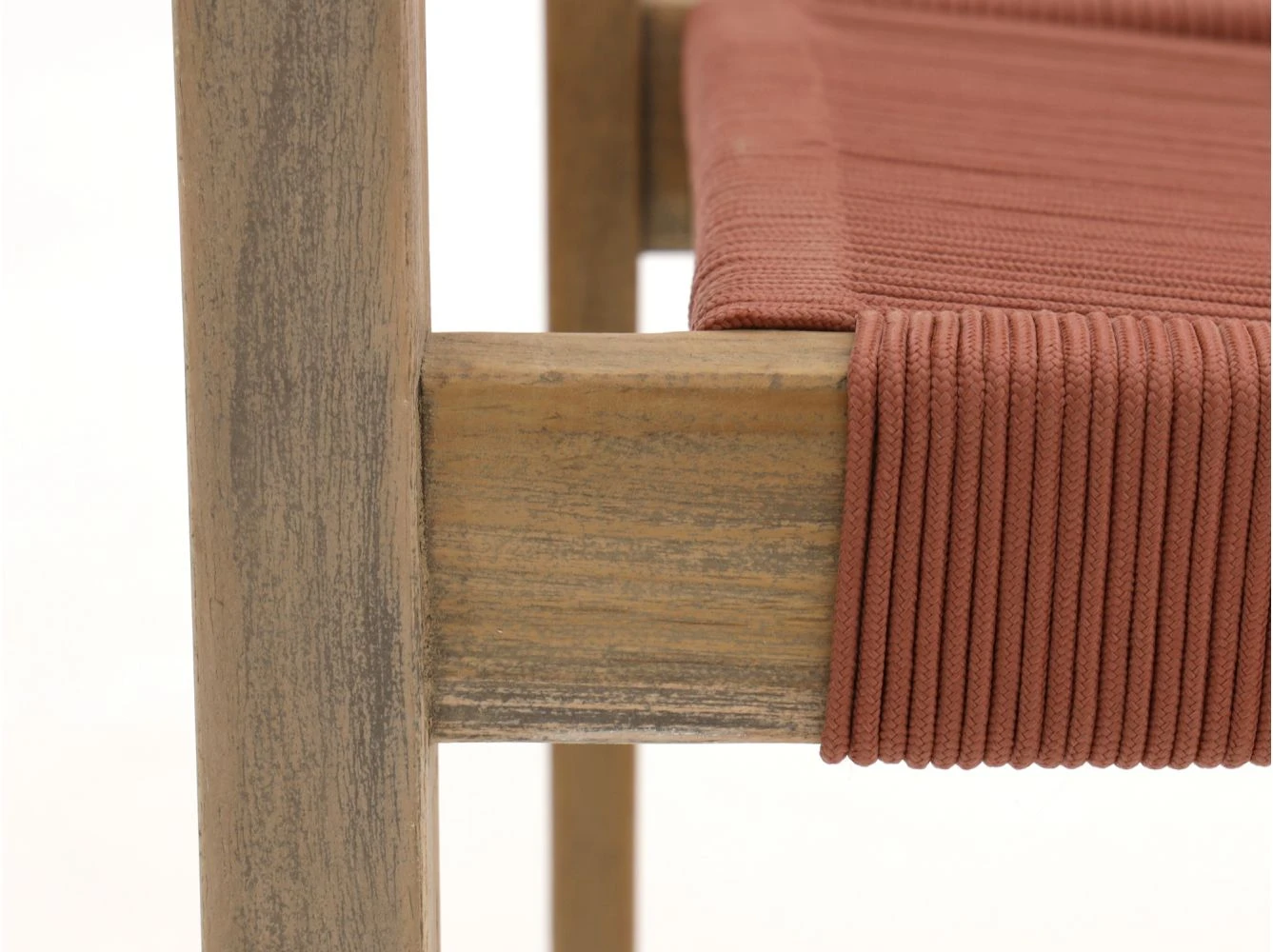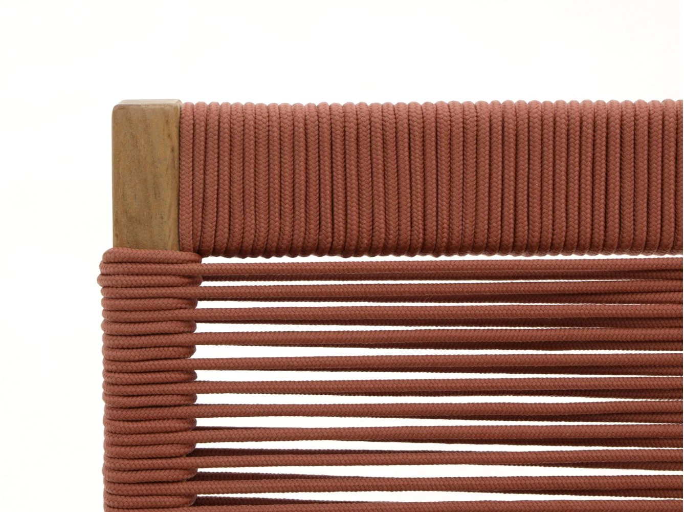 Der ROUGH Batang Rope Essstuhl stapelbar besteht aus Teakholz und sticht heraus mit seinen Sitz- und Rückenflächen aus Rope in den unterschiedlichsten Farbtönen. Die geradlinig angeordnete Verflechtung der einzelnen Rope Linien (Single Woven) garantiert einen hohen Sitzkomfort. Der Gartenstuhl ist stapelbar und kann somit platzsparend verstaut werden.