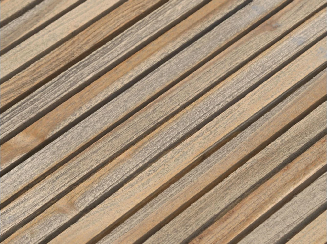 Der ROUGH-D Lounge/Esstisch (89×52,5 cm) ist mit einer Old Teak Greywash Waschung behandelt, die den Lounge/Esstisch robust aussehen lässt. Teakholz ist eine Hartholzart, die sehr gut für den Außenbereich geeignet ist und langsam wächst. Hierdurch sind die Holzfasern nah aneinander und das Holz behält seine glatte und feine Struktur auch im Laufe der Zeit. Jeder ROUGH-D Lounge/Esstisch hat sein eigenes, einzigartiges Aussehen. Da Teakholz ein Naturprodukt ist, arbeitet das Holz aufgrund von verschiedenen Witterungseinflüssen, sodass Struktur und Form sich verändern können. Im Laufe der Zeit entstehen Risse im Teakholz und das Teakholz bekommt seine eigene graue Farbe. Hierdurch bekommt der ROUGH-D Lounge/Esstisch ein noch robusteres Aussehen. Wir empfehlen Ihnen den ROUGH-D Lounge/Esstisch im Winter drinnen zu lagern. Wenn dies nicht möglich ist, können Sie den Esstisch am besten, nicht abgedeckt, draußen stehen lassen.