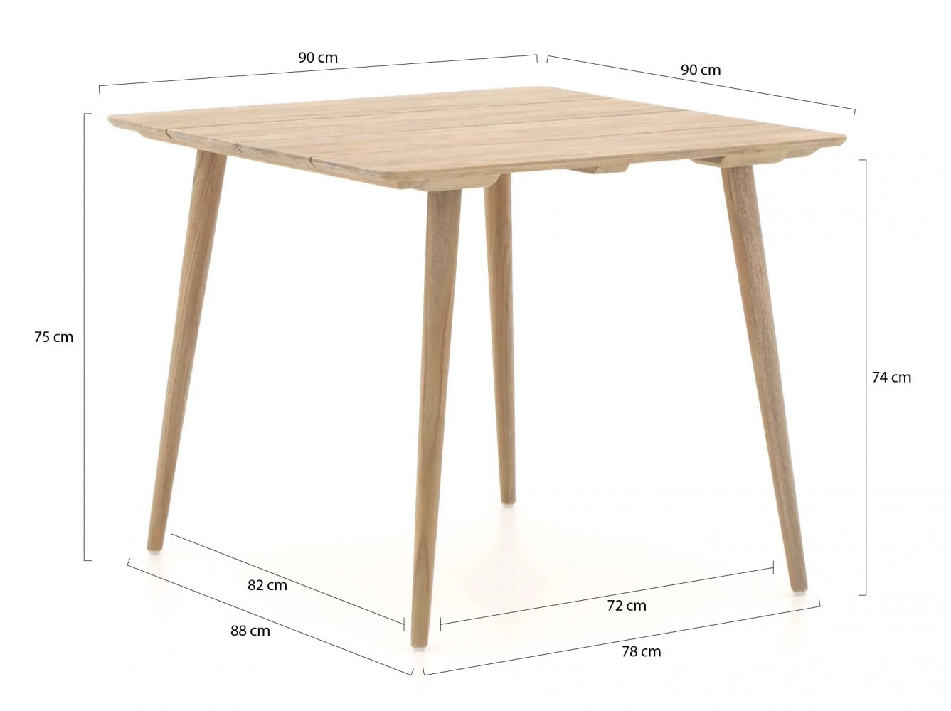 Der ROUGH-K Esstisch (90x90x75 cm) ist aus Teakholz gefertigt und hat schöne runde Tischbeine. Der Esstisch ist bereits mit einer Old Teak Greywash Waschung behandelt, wodurch der Esstisch nicht nur elegant sondern auch robust aussieht und Sie diesen nicht behandeln müssen. Dieser Esstisch bietet Platz für 4 Personen. Teakholz ist eine Hartholzart, die sehr gut für den Außenbereich geeignet ist und langsam wächst. Hierdurch sind die Holzfasern nah aneinander und das Holz behält seine glatte und feine Struktur auch im Laufe der Zeit.