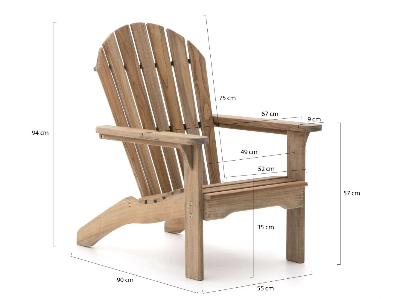 Der Adirondack Gartensessel ist aus Teakholz gefertigt, welches bereits mit einer Old Teak Greywash Waschung behandelt wurde. Durch diese Waschung wurde der Alterungsprozess des Teakholzes vorweggenommen. Weiteres Einölen oder Lackieren ist somit nicht notwendig. Im Laufe der Zeit erhält das Teakholz die typisch graue Farbe. Teakholz ist ein Naturprodukt und erhält durch verschiedene Witterungseinflüsse ein raues Aussehen. Das Auftreten von Rissen und Sprüngen trägt zu dem robusten Look dieser Holzart bei. Die genauen Abmessungen dieses Sessels finden Sie bei den Produktbildern.