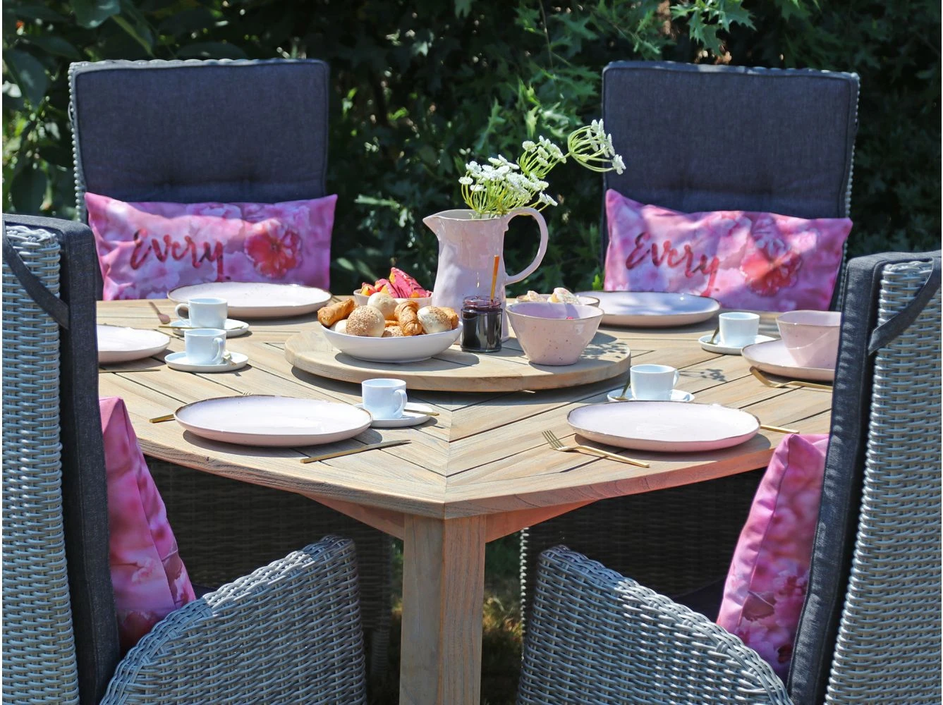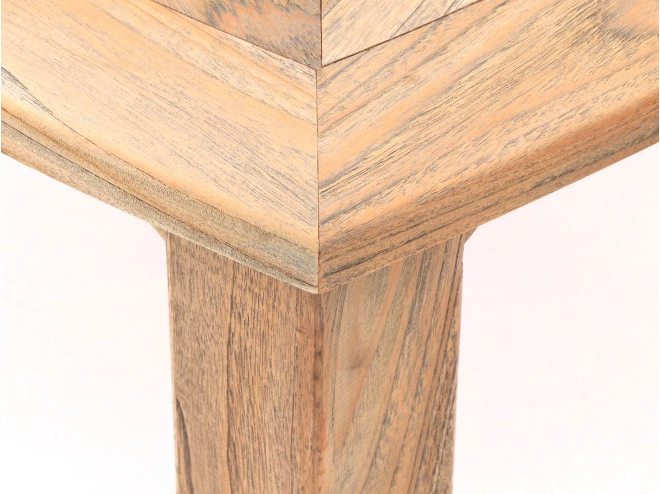 Teakholz ist eine Hartholzart, die sehr gut für den Außenbereich geeignet ist und langsam wächst. Hierdurch sind die Holzfasern nah aneinander und das Holz behält seine glatte und feine Struktur auch im Laufe der Zeit.