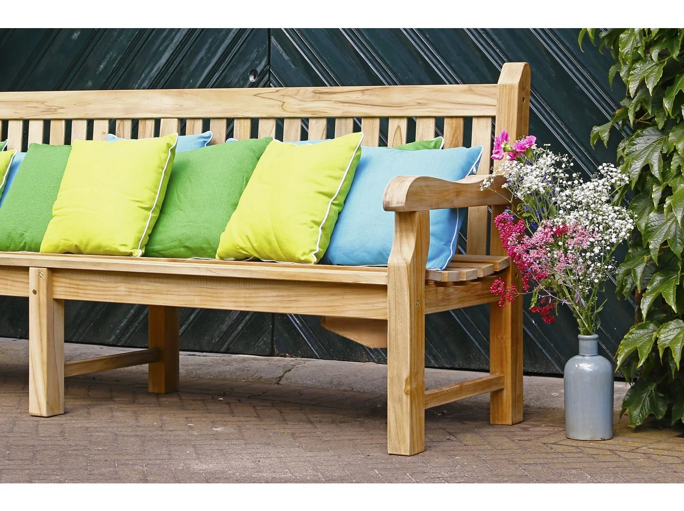 Diese Gartenbank lässt sich mit Tischen und Stühlen aus verschiedenen Größen aus der Serie Sunyard kombinieren. Mit vielen gemütlichen Dekokissen aus unserem Sortiment verschönern Sie Ihre Bank und machen diese zu einem einzigartigen Rückzugsort. Stellen Sie Ihre eigene Kombination zusammen oder lassen Sie sich von uns beraten. Wir helfen Ihnen gerne weiter!