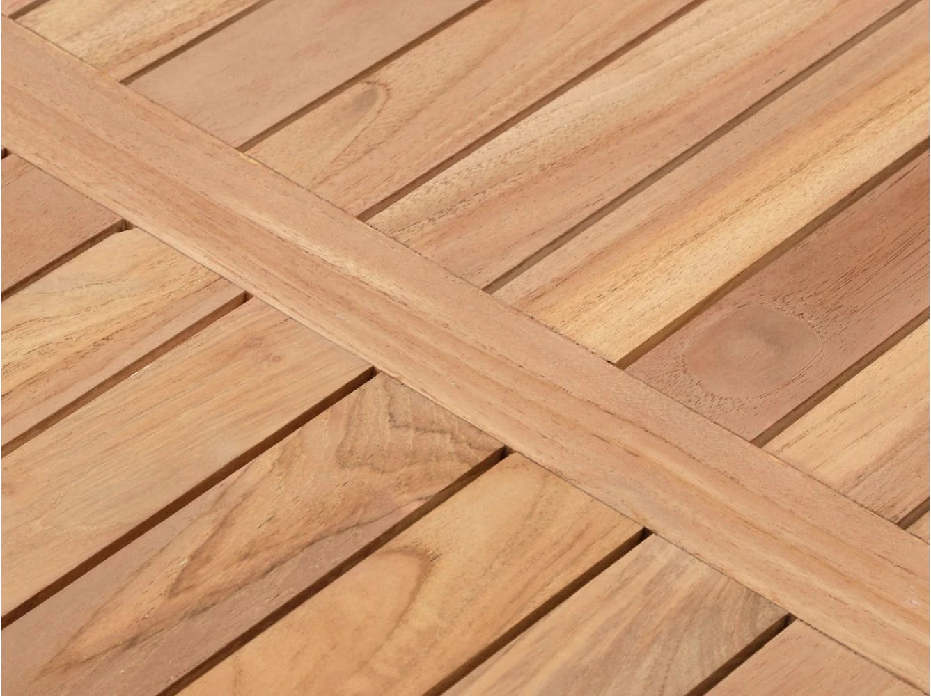 Dieser Klapptisch ist aus unbehandeltem Teakholz gefertigt. Teakholz ist ein Naturprodukt und wird durch verschiedene Witterungseinflüsse ein raues Aussehen erhalten. Im Laufe der Zeit erhält das Teakholz den typisch grauen Farbton. Das Auftreten von Rissen und Sprüngen trägt zu dem einzigartigen Look dieser Holzart bei. Die genauen Abmessungen finden Sie bei den Produktbildern.