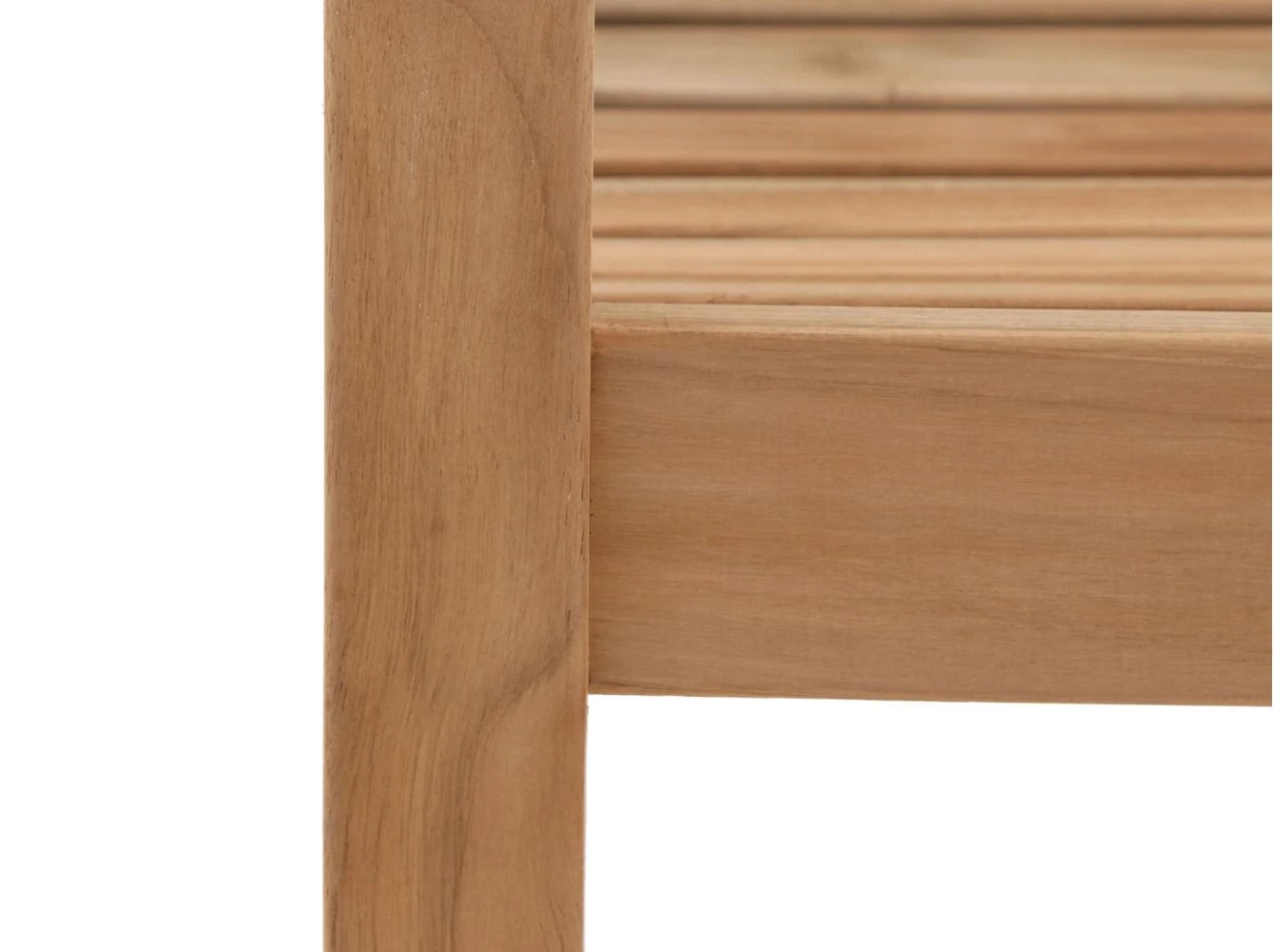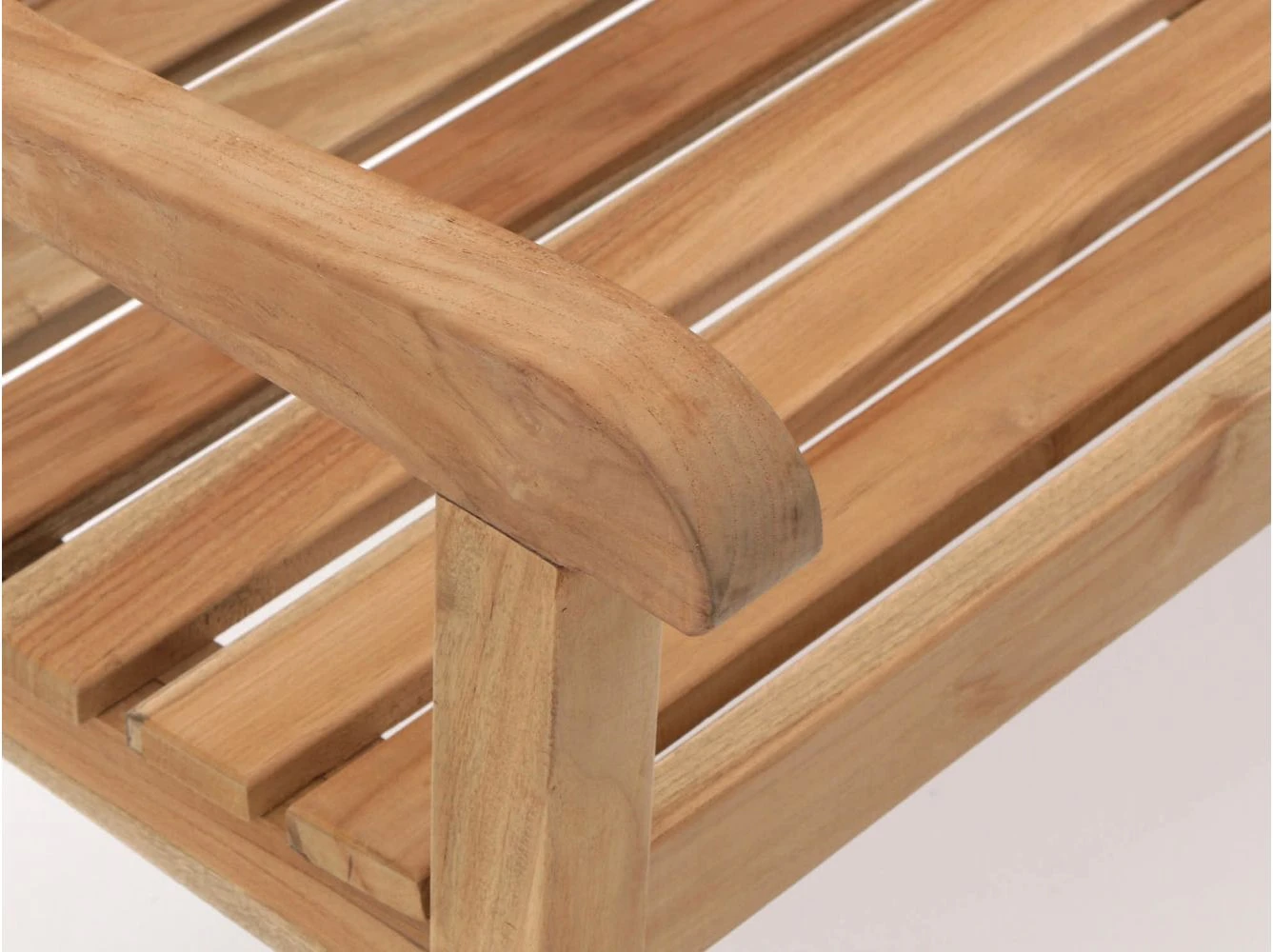 Diese Gartenbank ist aus unbehandeltem Teakholz gefertigt. Teakholz ist ein Naturprodukt und wird durch verschiedene Witterungseinflüsse ein raues Aussehen erhalten. Im Laufe der Zeit erhält das Teakholz den typisch grauen Farbton. Das Auftreten von Rissen und Sprüngen trägt zu dem einzigartigen Look dieser Holzart bei. Die genauen Abmessungen finden Sie bei den Produktbildern.